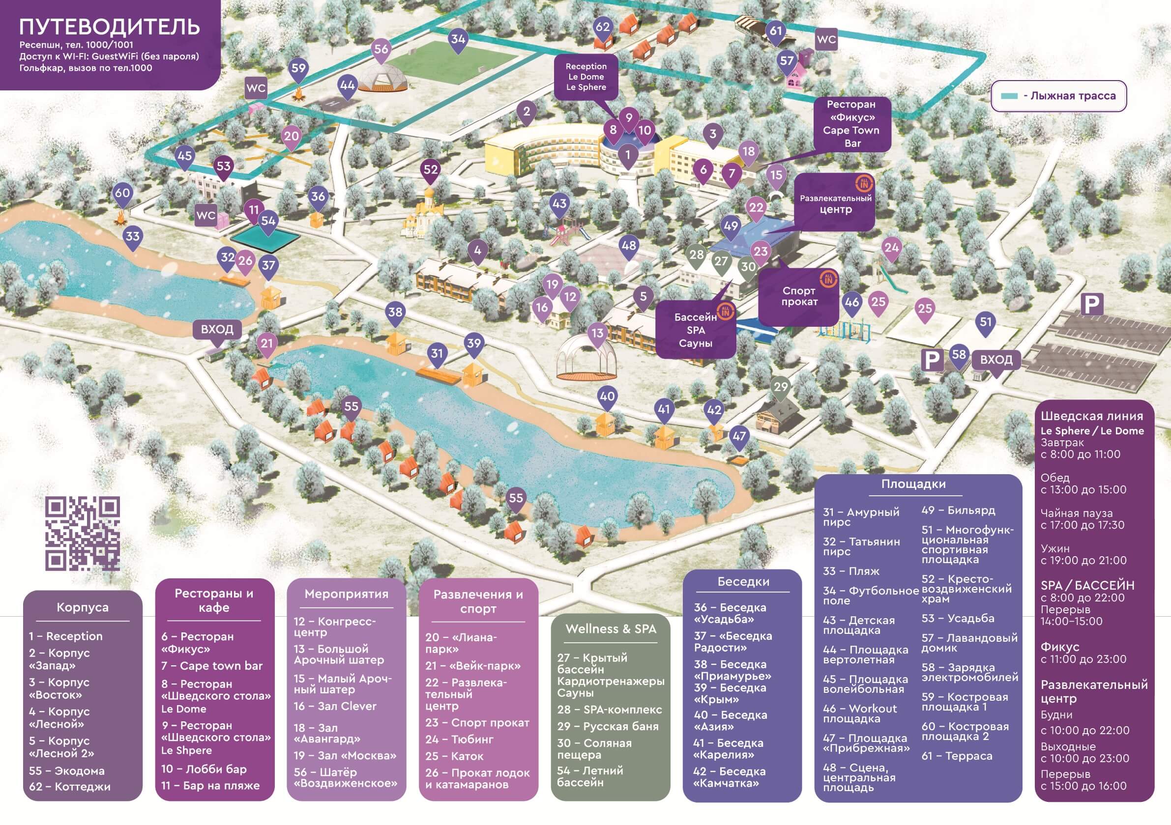 Расширенный шведский стол: завтрак (08:00-11:00), обед (13:00-15:00), чаепитие 5o’clock (17.00-17.30), ужин (19:00-21:00), алкогольные напитки во время обеда и ужина (пиво, вино), шампанское на завтрак.